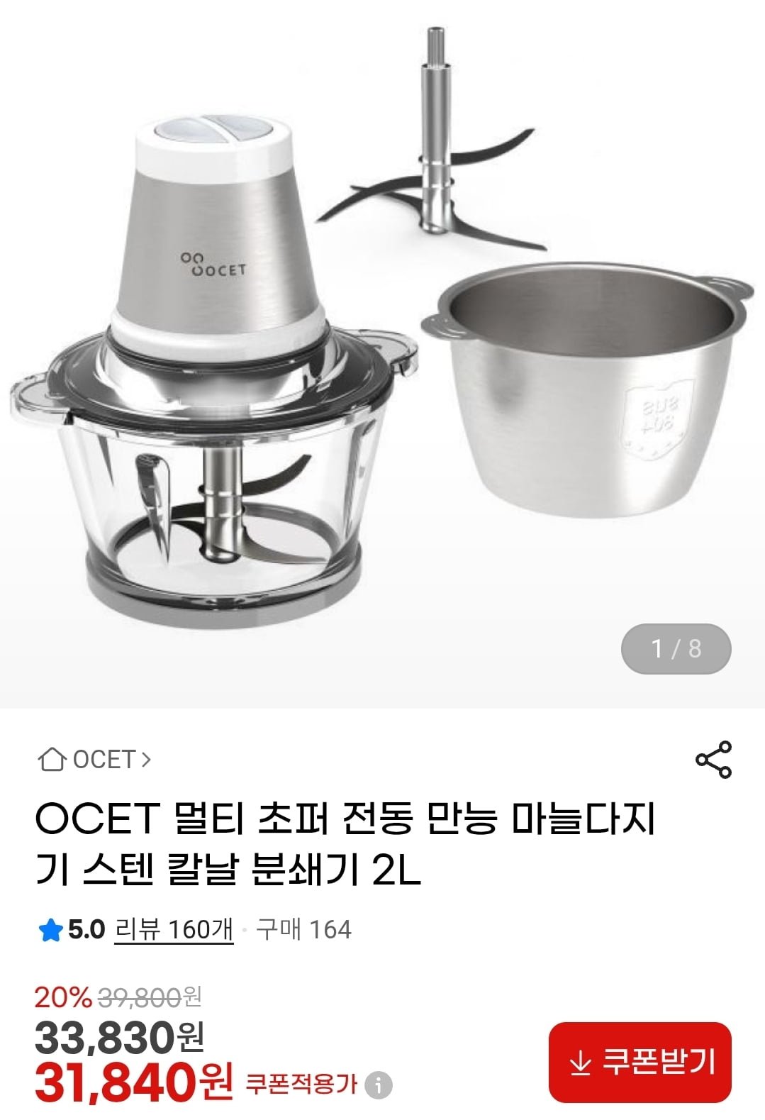 [지마켓]멀티 초퍼 전동 만능 마늘다지기 스텐 칼날 분쇄기 2L (31,840원/무배)