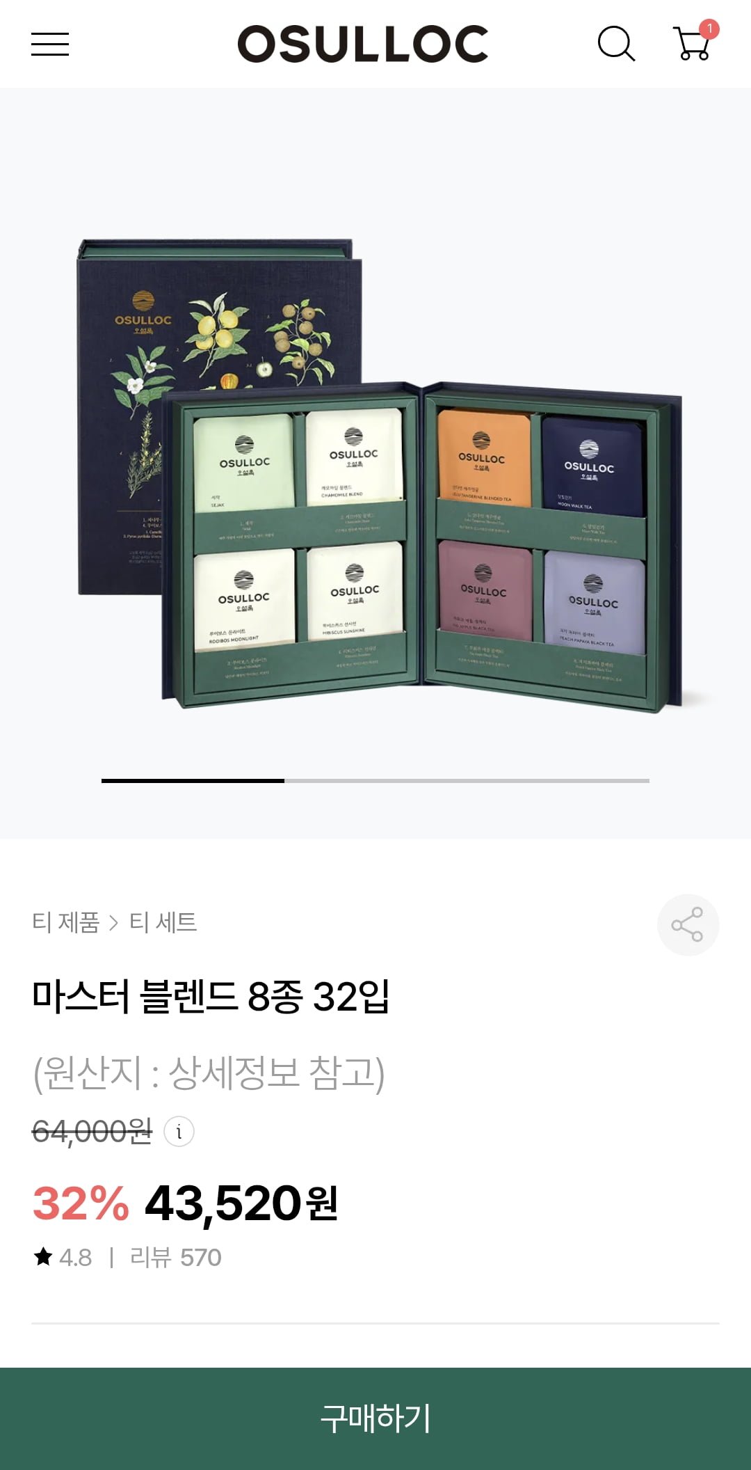 [오설록]마스터 블렌드 8종 32입 (31,770원/무료) - 딜모아