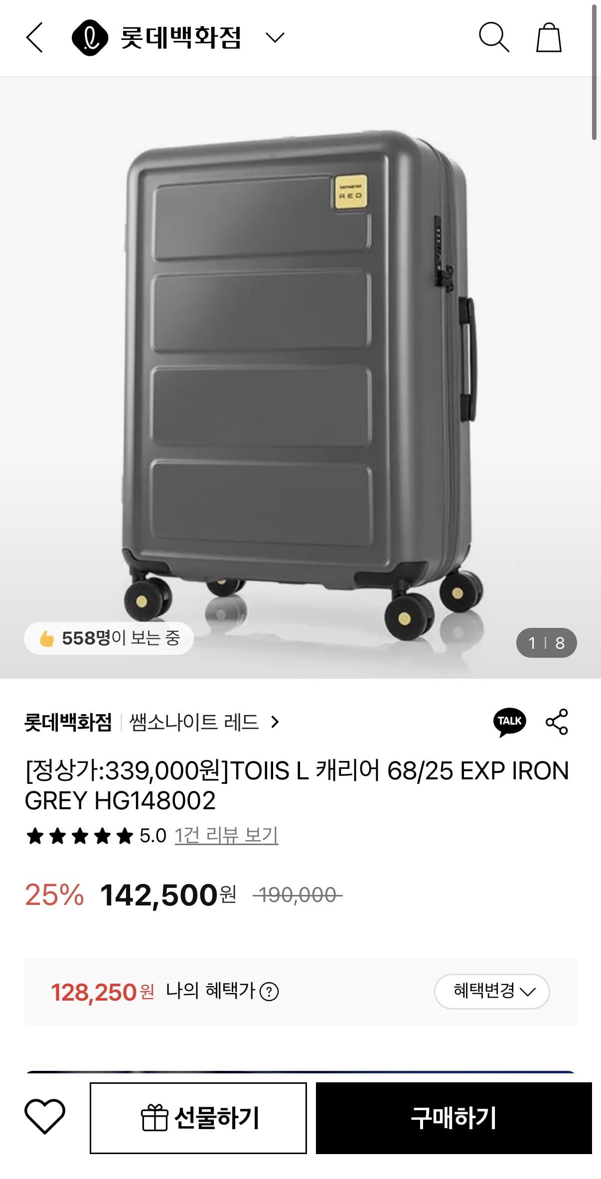[롯데백화점]쌤소나이트레드 TOIIS L 캐리어 68/25 (128,250/무배)
