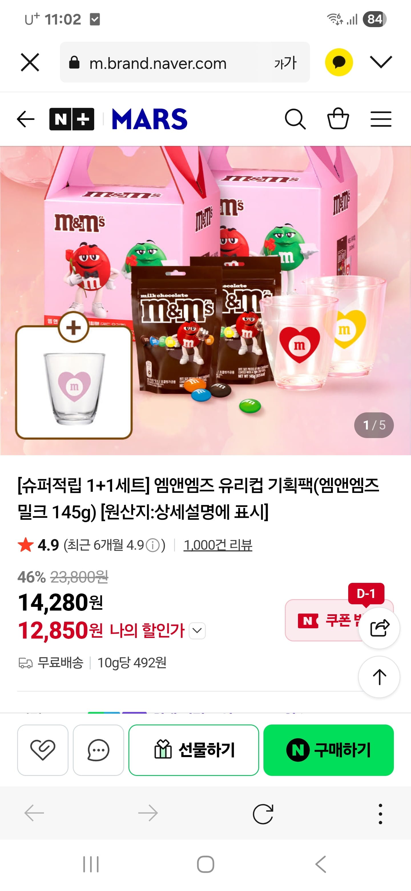 [네이버]슈퍼적립 엠앤엠즈 유리컵기획팩 12850원/무료배송