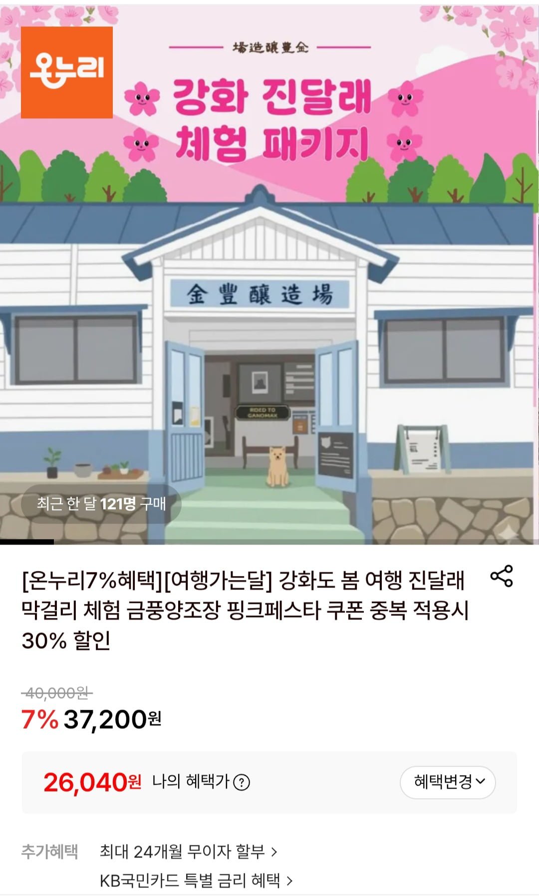 [롯데온]강화도 봄 여행 진달래 막걸리 체험 (26,040원/무료) - 딜모아