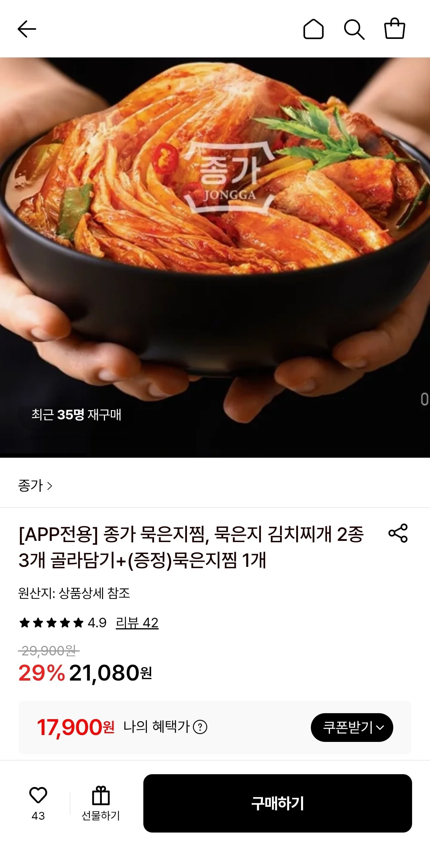 [롯데온]종가 묵은지찜/묵은지찌개 2+1개 골라담기+묵은지찜 1개증정 (17,900원/무료) - 딜모아