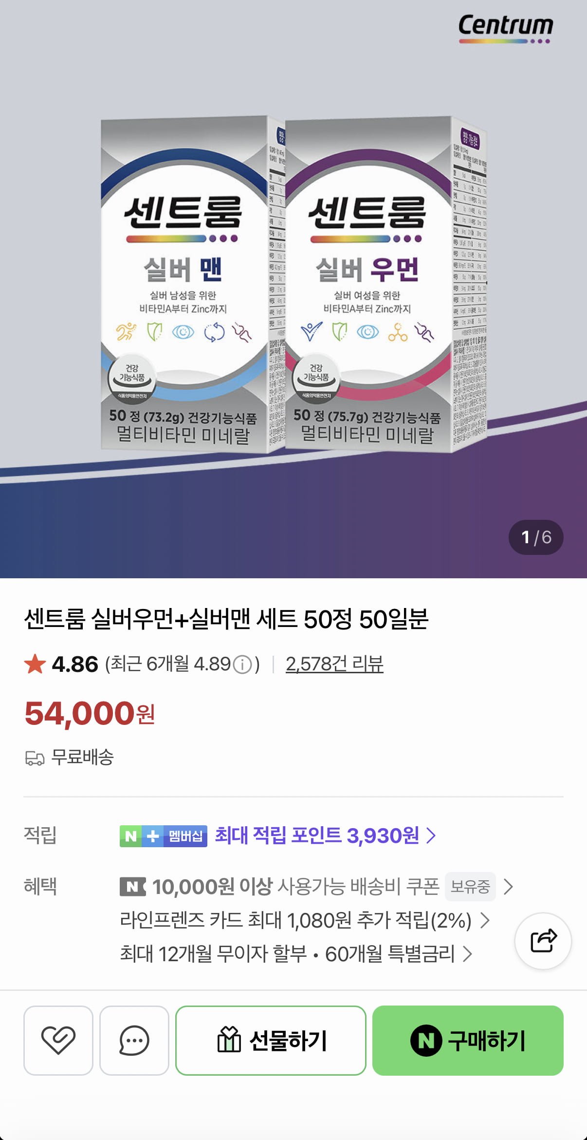 [네이버]센트룸 실버우먼+실버맨 세트 50정 50일분 (54,000원/무료)