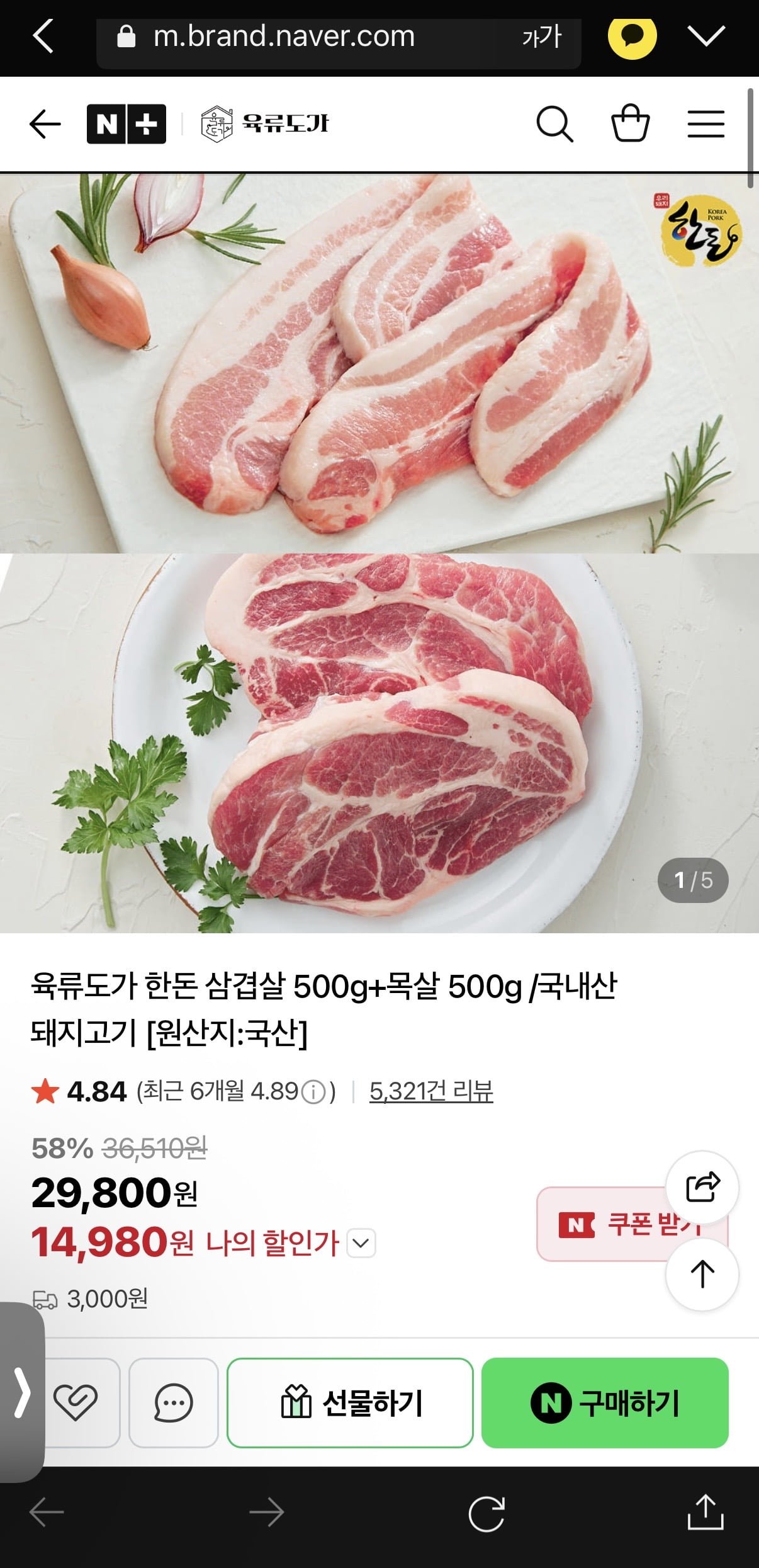 [네이버]육류도가 삼목세트 1kg (14,980원/3,000원)