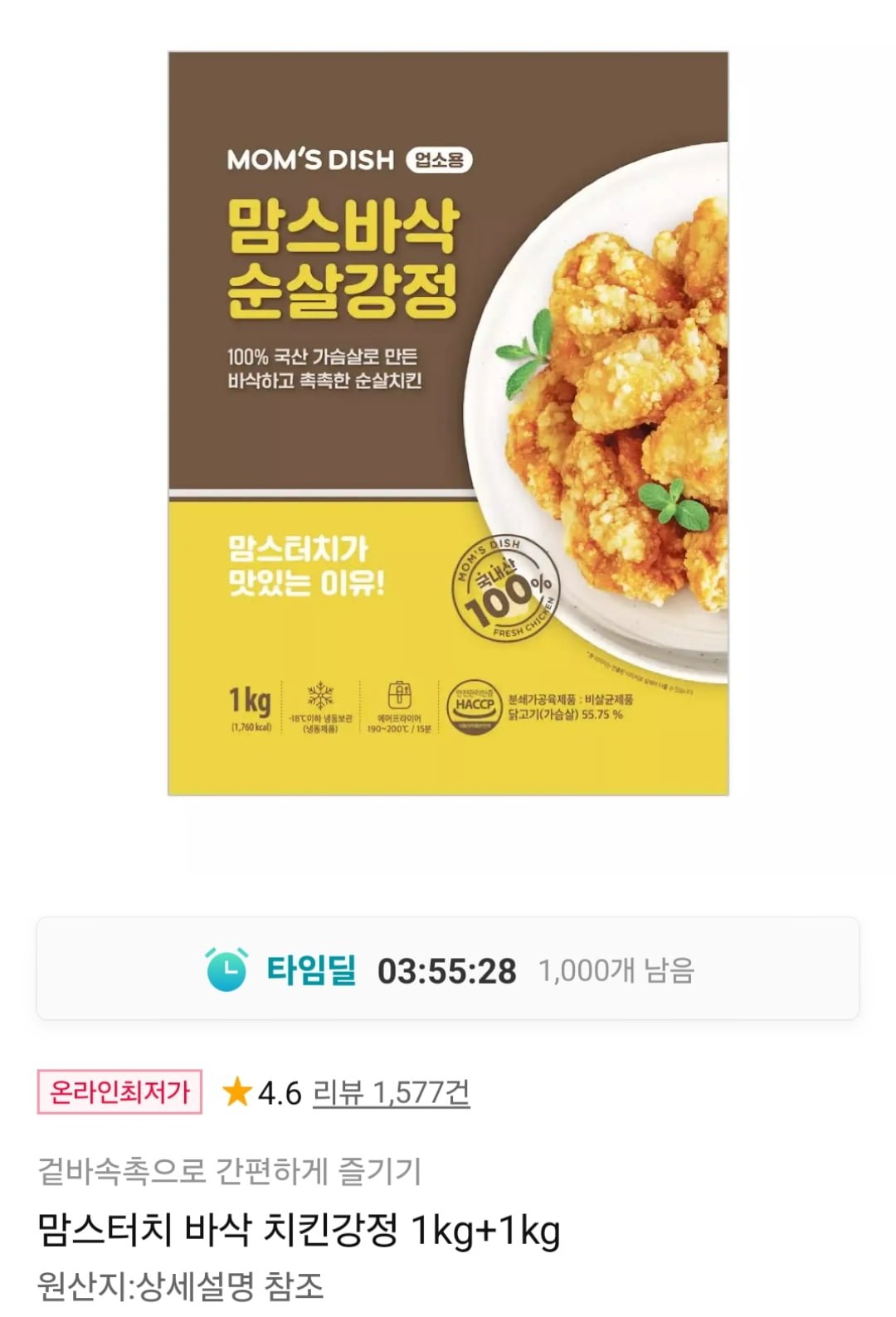 [11번가]맘스터치 바삭 치킨강정 2kg (16,000원 / 무료)