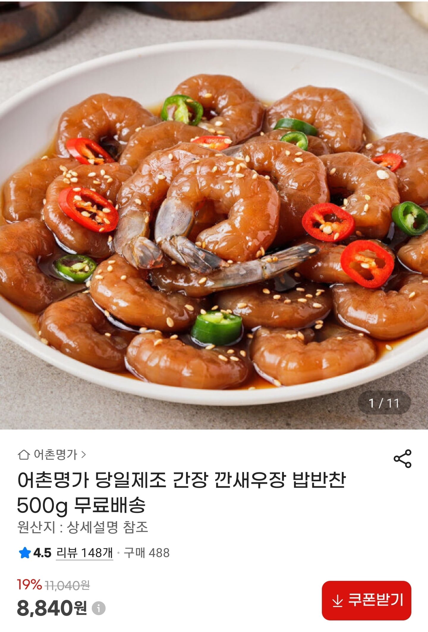 [지마켓]어촌명가 깐새우장 500g (8,840원/무료)