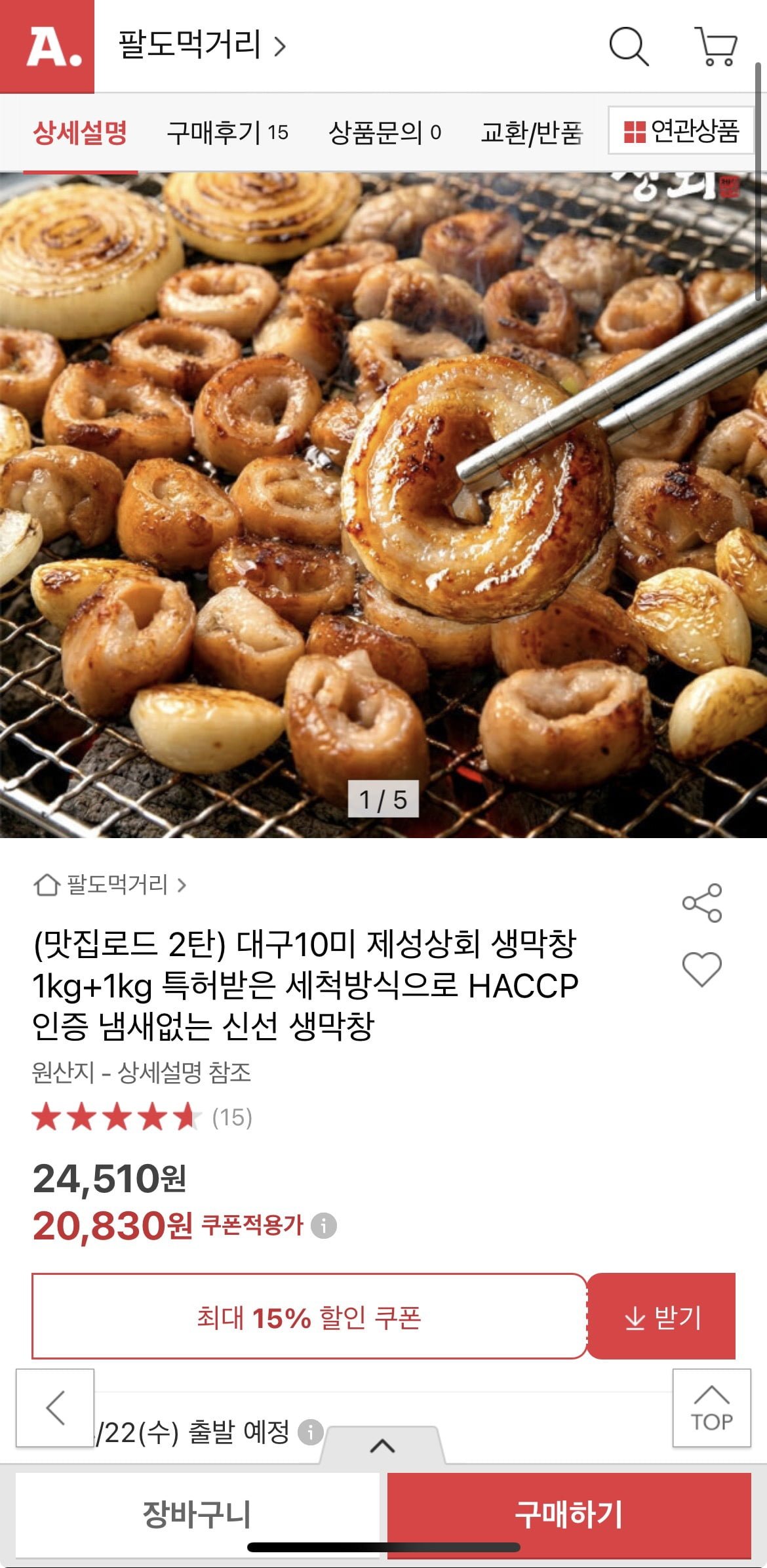 [옥션]대구10미 제성상회 생막창 1kg+1kg (20,830원/무배)