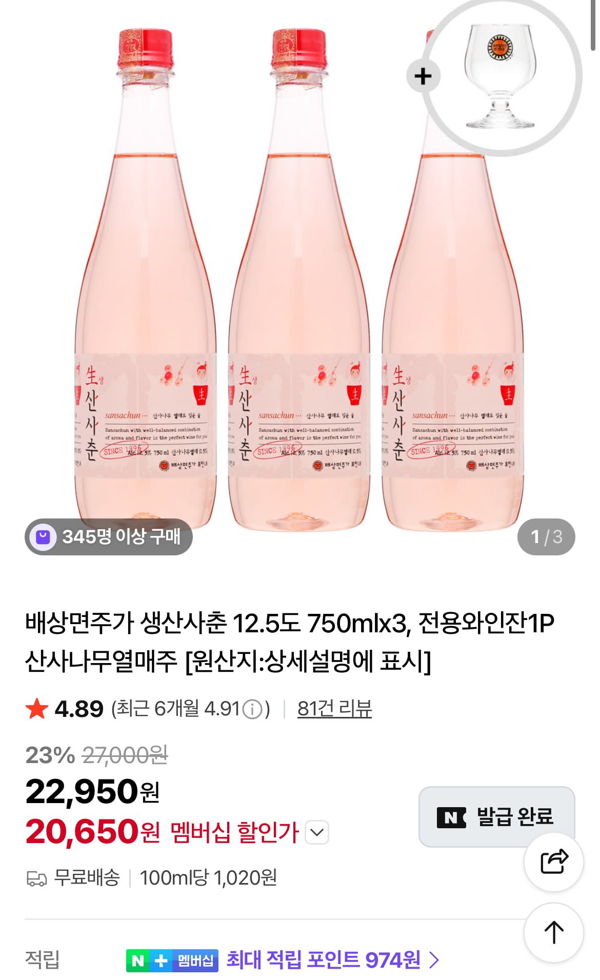 [네이버]배상면 생산사춘, 국순당생백세주, 내외소주39 (20,650원/무료)