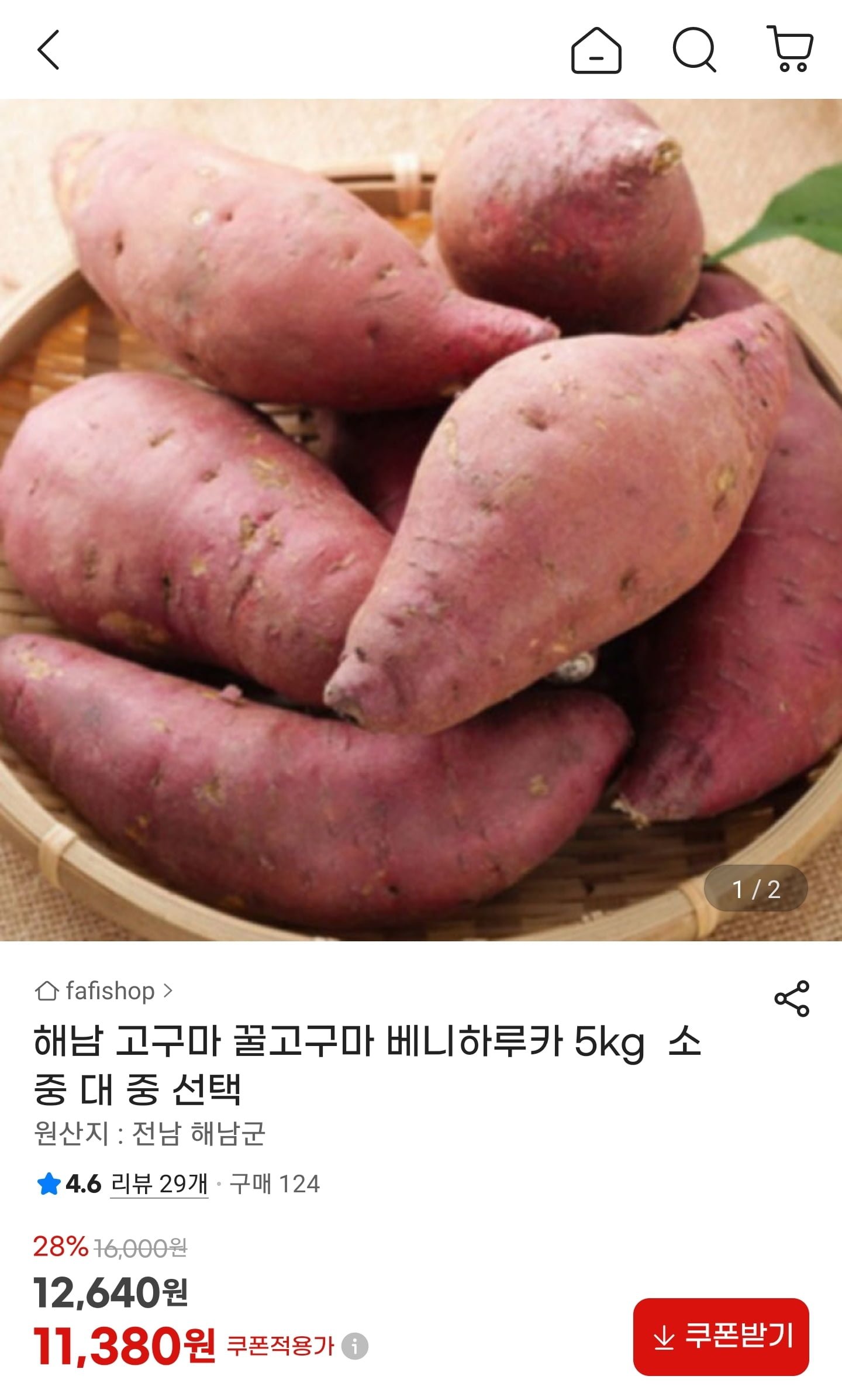 [지마켓]해남 고구마 베니하루카 5kg (11,380원~/무료)
