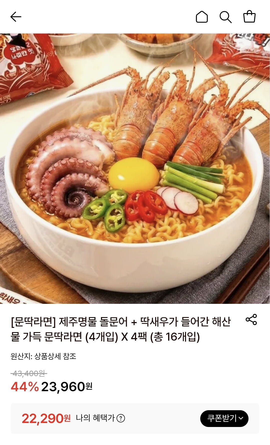 [롯데온]문딱라면 16개입 (22,290원/무료) - 딜모아