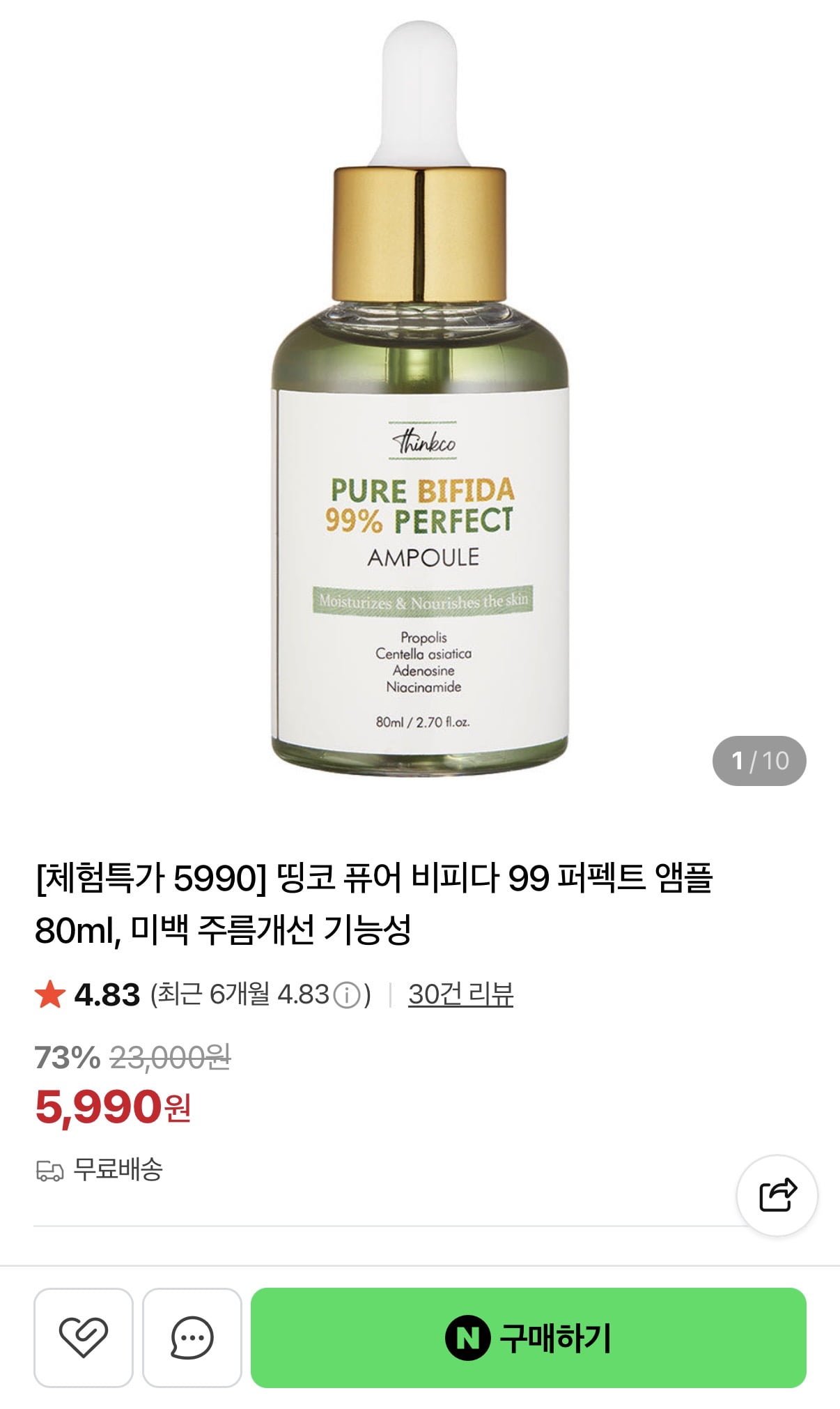 [네이버]퓨어 비피다 99 퍼펙트 앰플 80ml (5,990원/무배)