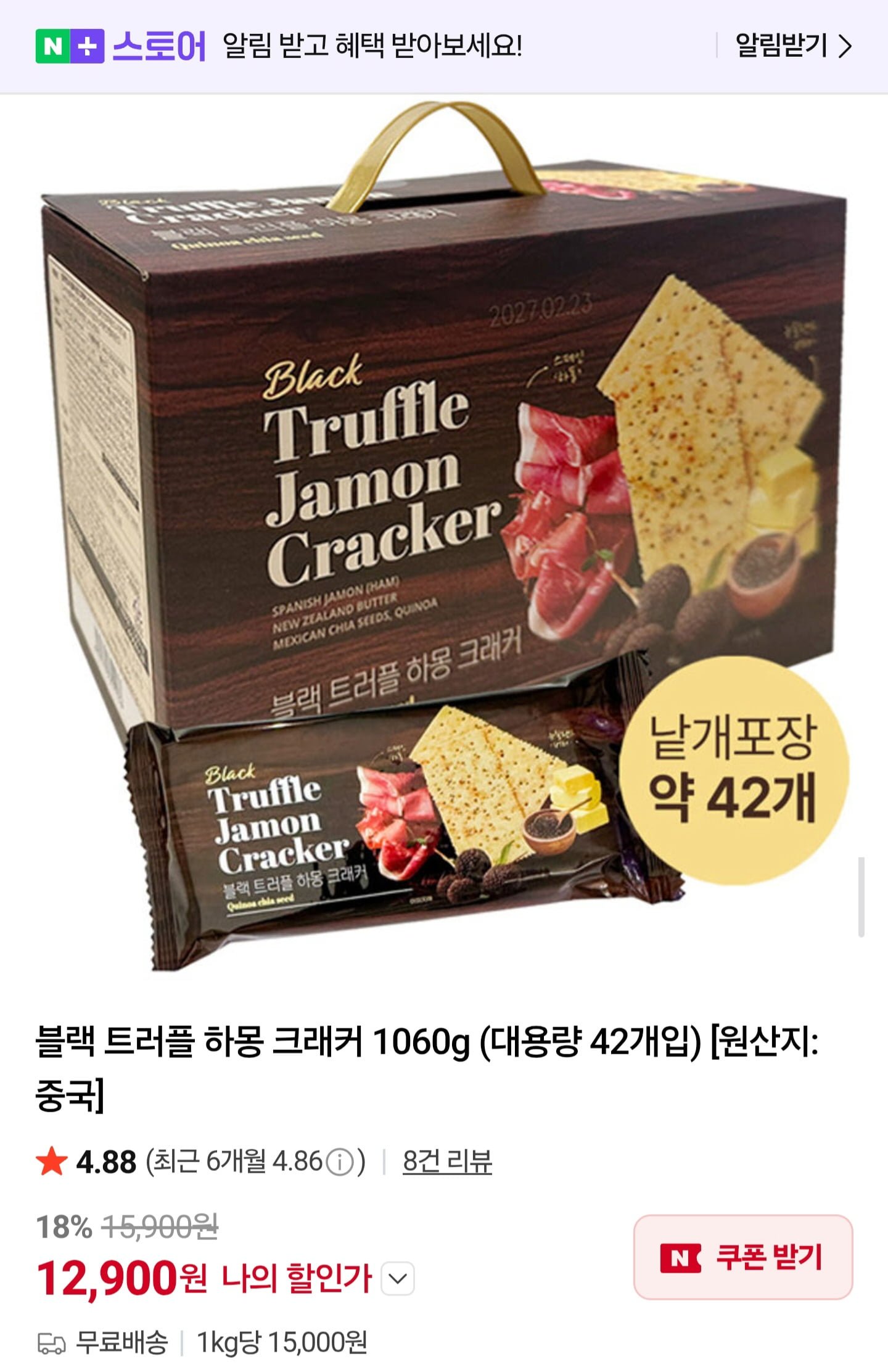 [네이버]블랙 트러플 하몽 크래커 1060g (12,900원/무배)