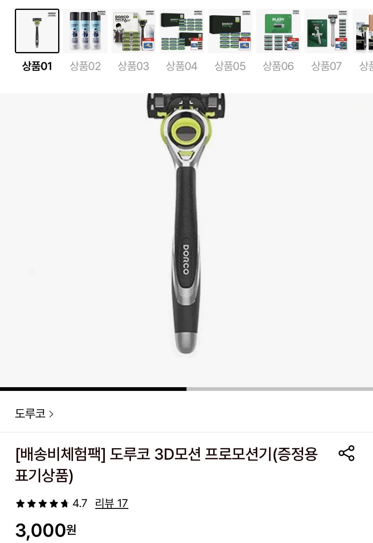 [롯데온]배송비체험팩 도루코 3D모션 프로모션기 (3,000원/무료)