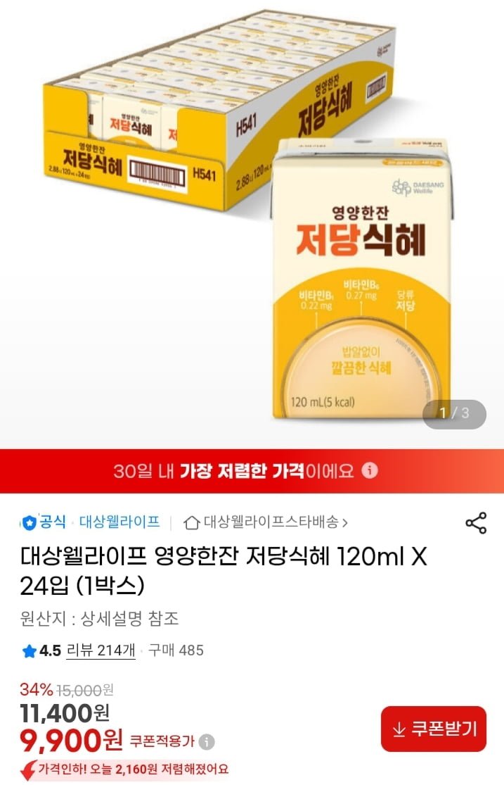[지마켓]대상웰라이프 영양한잔 저당식혜 120ml 24개 (9900원/무배) - 딜모아