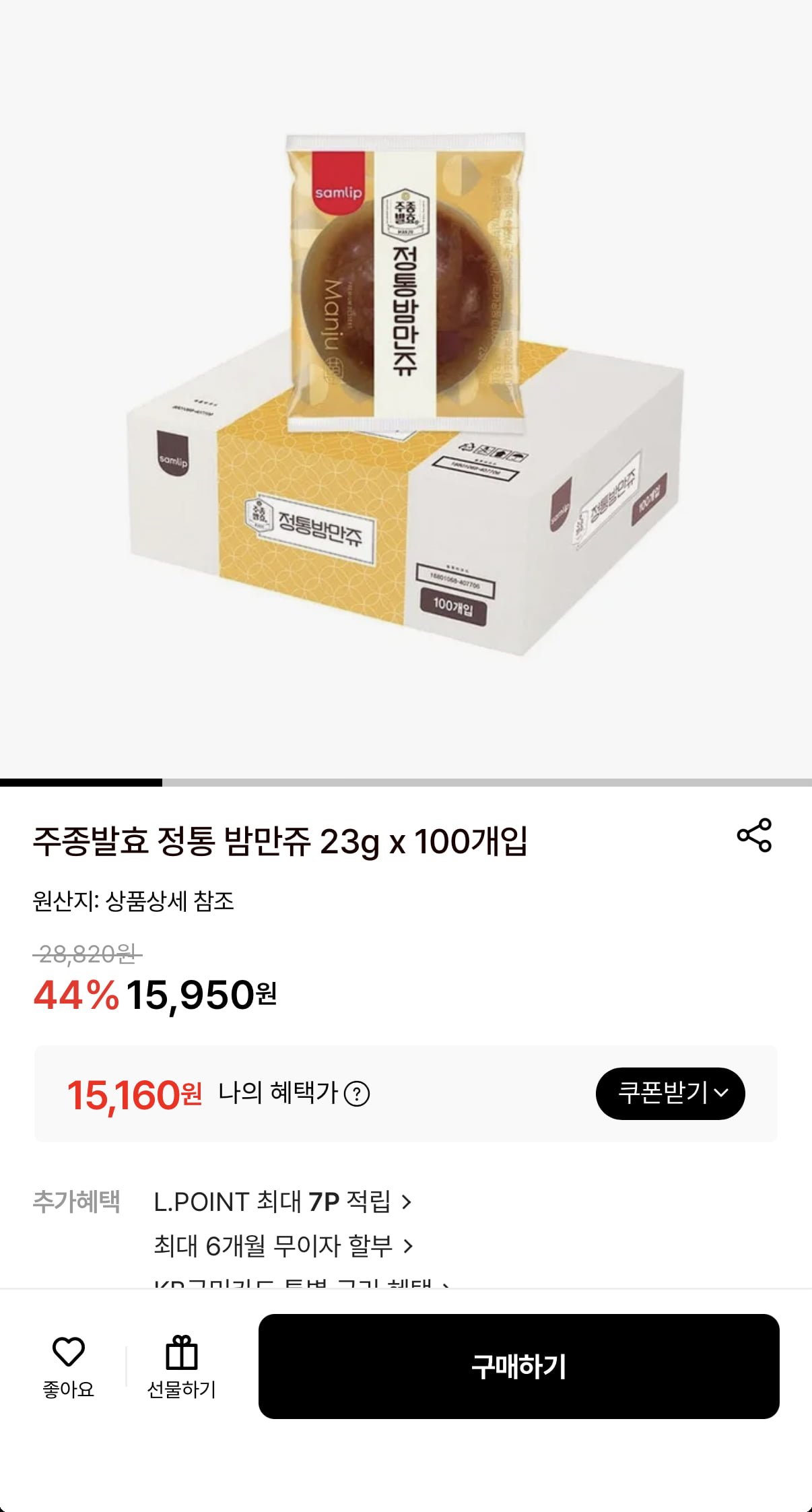 [롯데온]밤만쥬 정통 23g 100개입 (15,160원/무료)