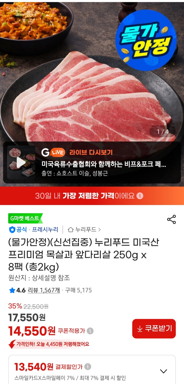 [지마켓] 프레시누리 누리푸드 프리미엄 목전지 250g 8팩 (2kg)