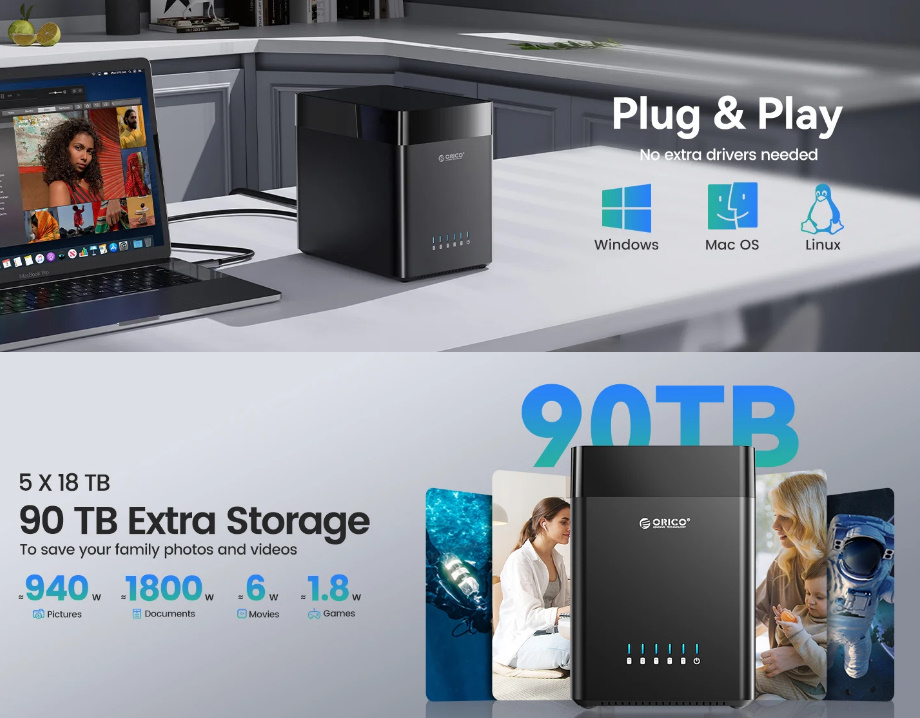 [알리] ORICO DS500 시리즈 5 베이 3.5인치 Type-C - 딜모아