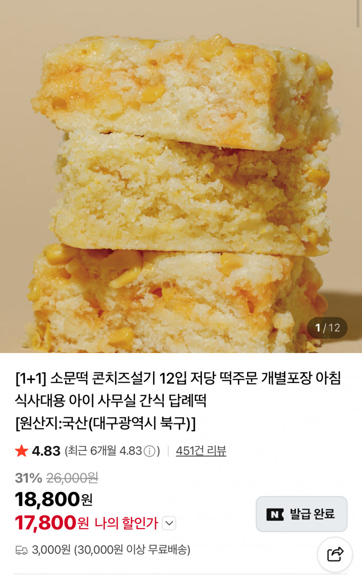[네이버] 콘치즈설기 1+1 24개 - 딜모아