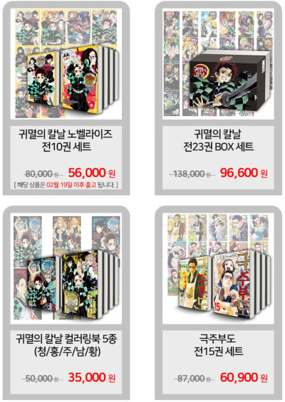 [지마켓] 학산문화사 기획전 (귀멸의 칼날 전23권 99,600원 외 다수)