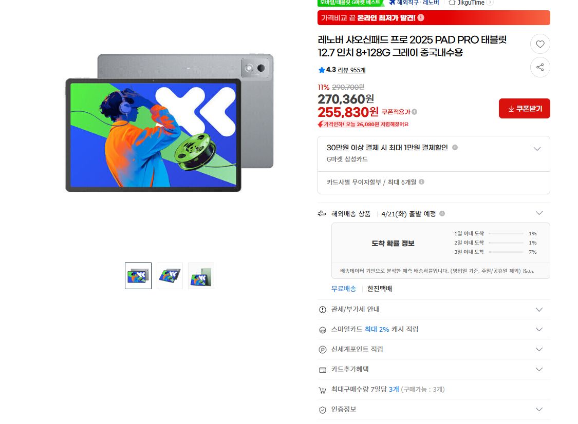 [지마켓] 레노버 샤오신패드 프로 2025 PAD PRO 태블릿 12.7 인치 8+128G 그레이 ... - 딜모아