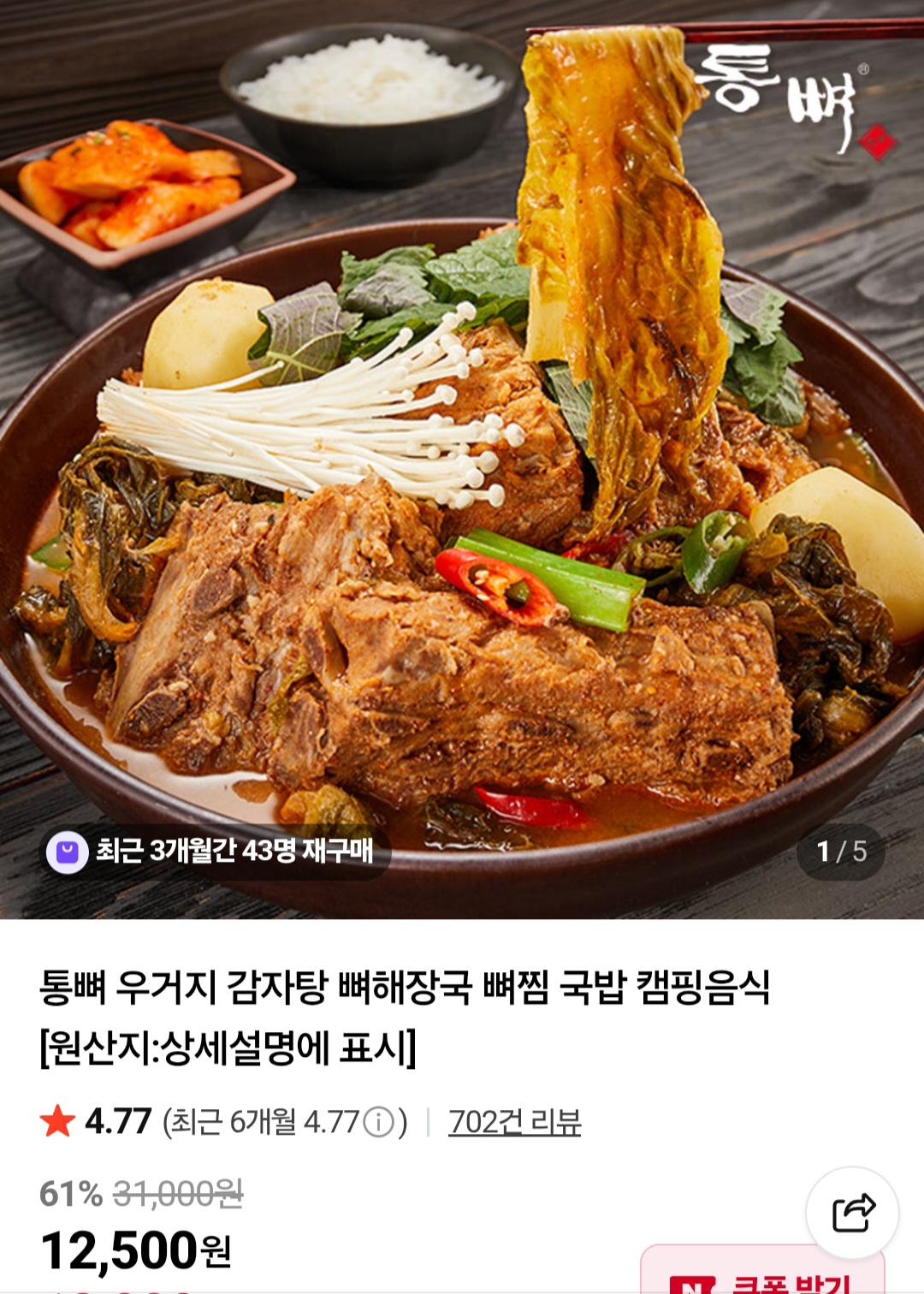 [네이버] 우거지 감자탕 1kg 2팩 (12,000원 / 무배)