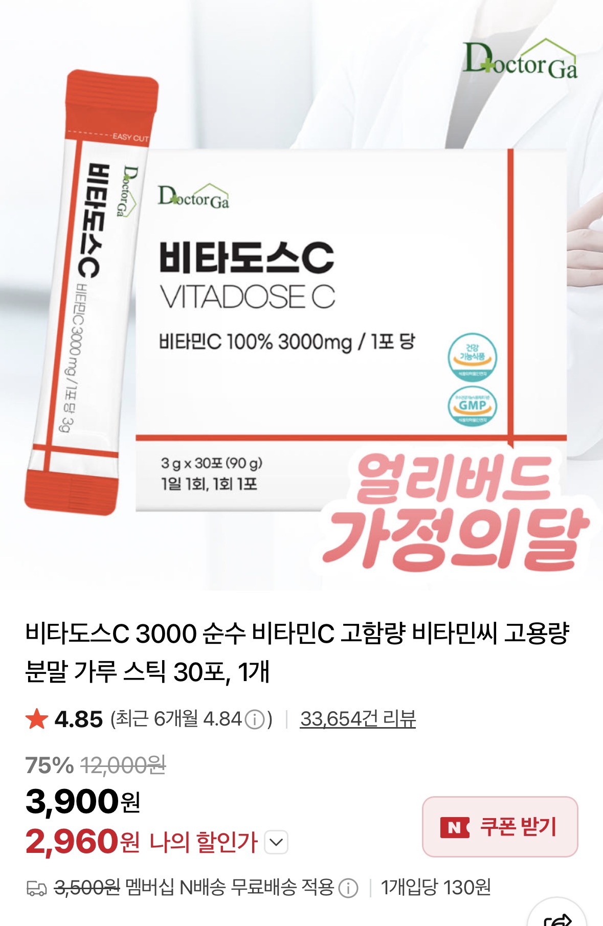 [네이버] 비타도스C 3000 분말 가루 스틱 30포(2,960원/네멤무료)