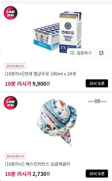 [11번가] 10시 선착순 연세 멸균우유 190ml x 24개 9900원...