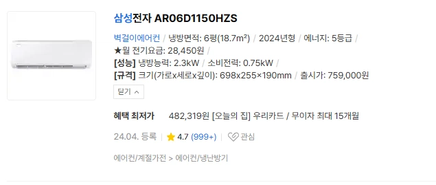 오늘의집)3성 인버터 벽걸이에어컨AR06D1150HZS [482,320원... - 딜모아