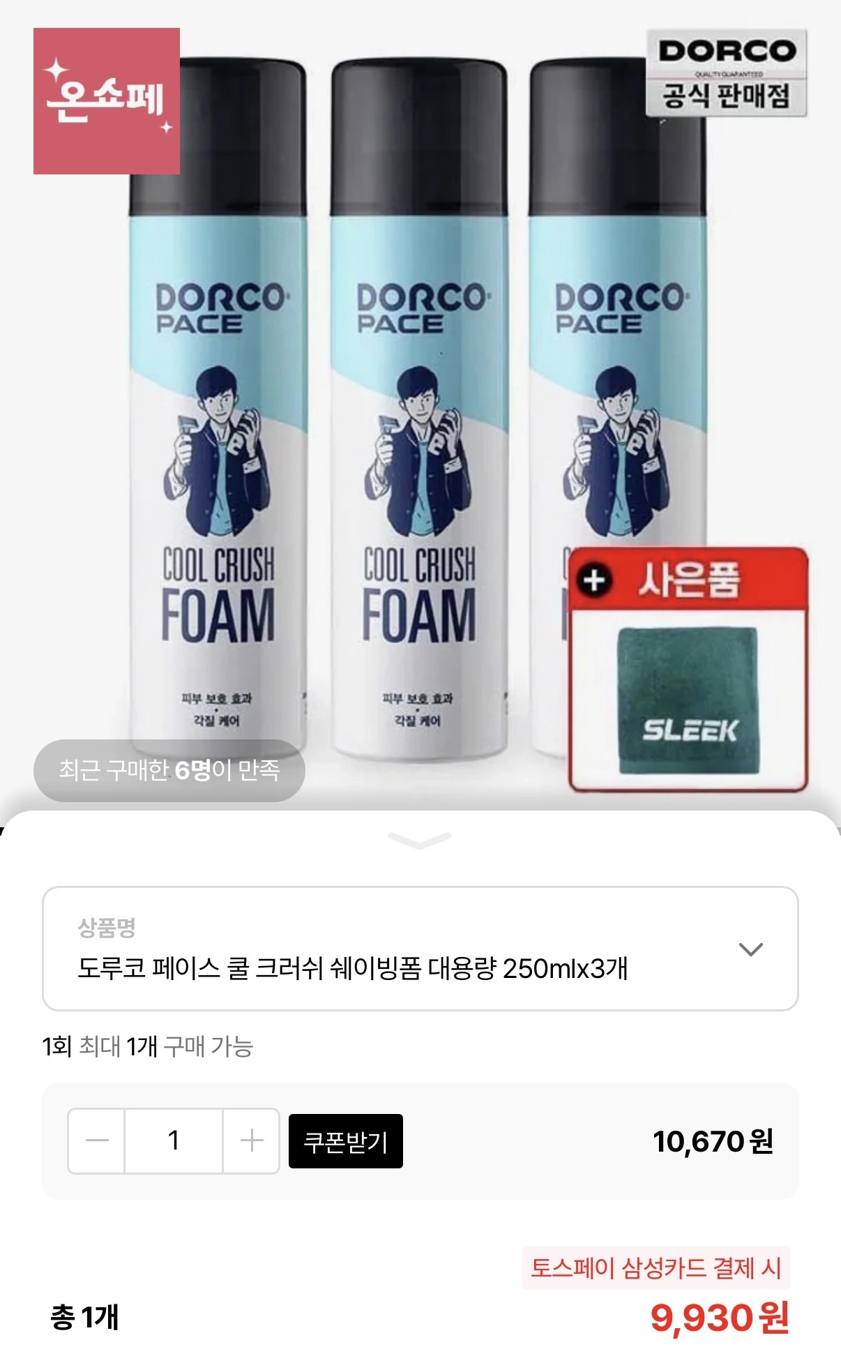 [롯데온] 도루코 쿨 크러쉬 쉐이빙폼 250ml 3개+수건 (9,930원...