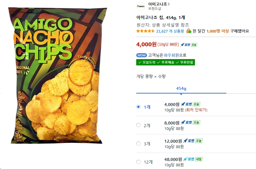 [쿠팡] 아미고나쵸 칩 454g 4000원