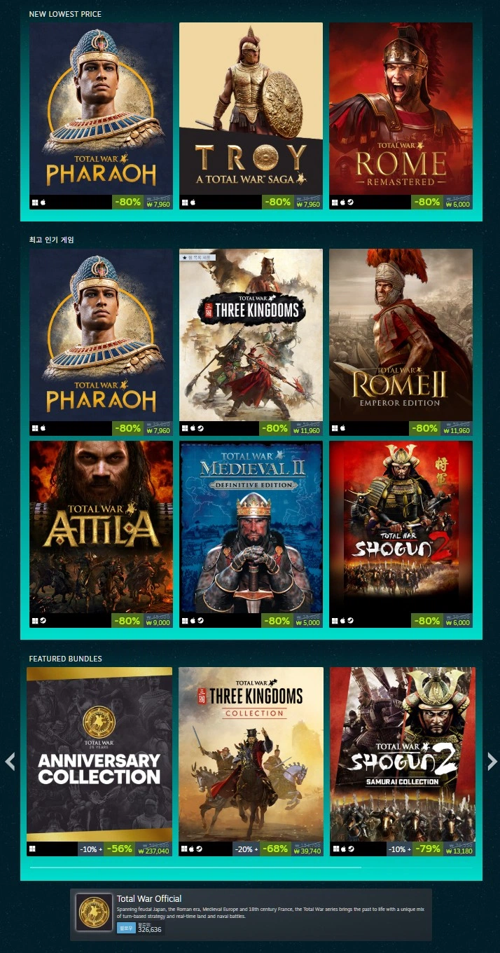 [스팀] 토탈워 시리즈 프랜차이즈 세일